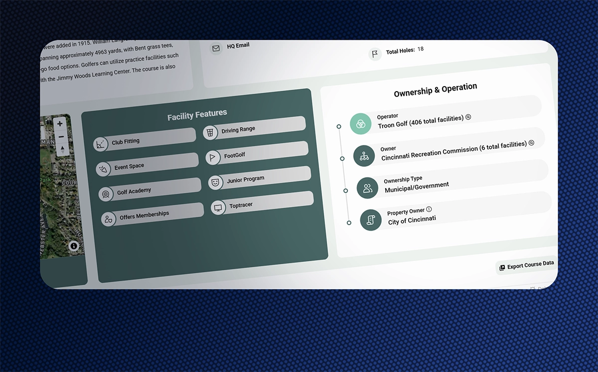 Learn more about Downgrain’s golf property record owner data and the hundreds of other data points we collection golf facilities.